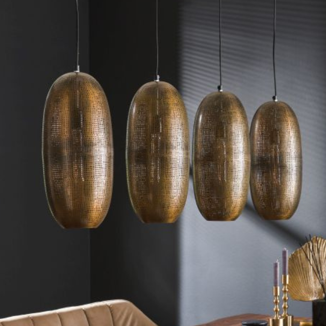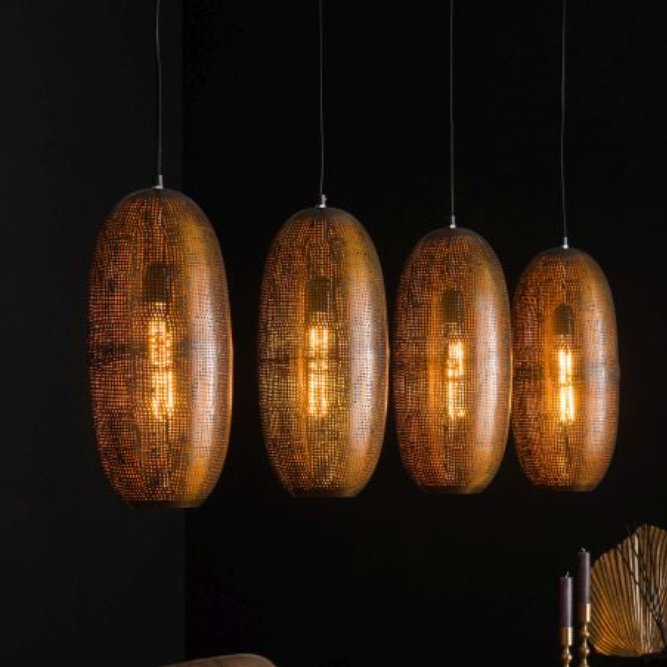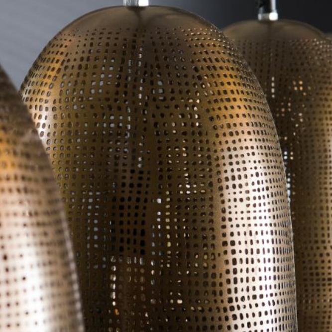 Each pendant boasts hand-finished perforations that scatter light beautifully across your room, adding a dramatic and artistic flair. Whether installed above a home bar counter, kitchen island, or dining table, the Athena pendant light enhances your space with its industrial-modern charm.