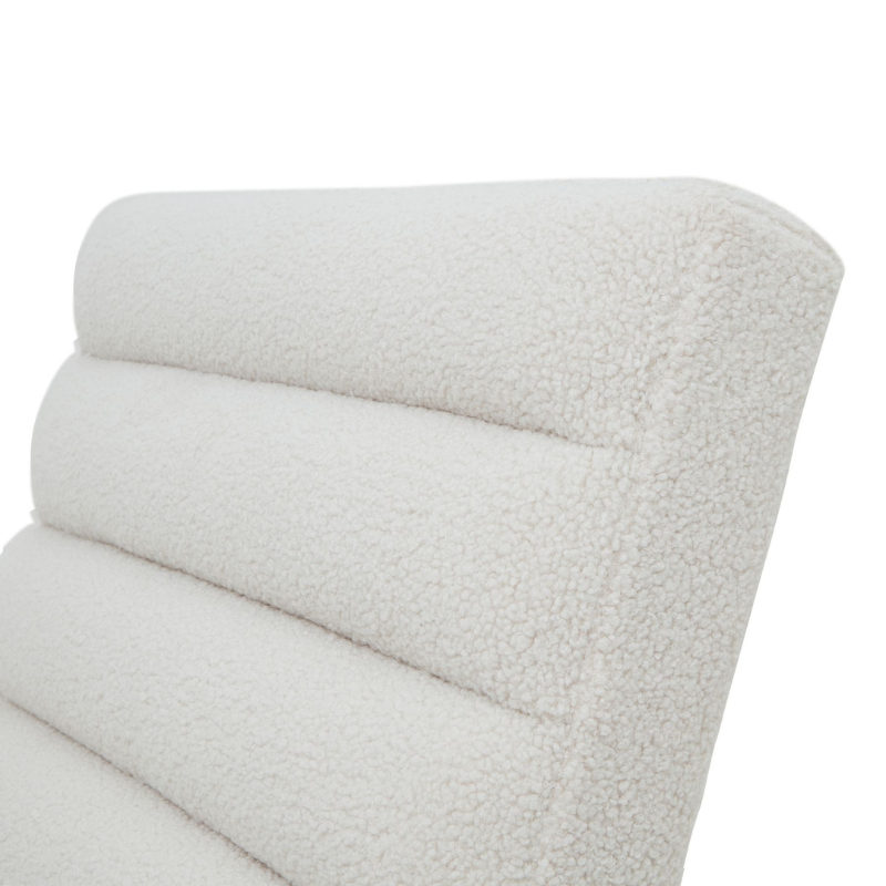 Built with durability in mind, the Boucle Ribbed Ark Chair pairs a robust metal frame with premium boucle fabric, ensuring it withstands frequent use without losing its refined appeal. Its ergonomic rocker motion makes it an inviting choice for social gatherings, intimate wine tastings, or simply unwinding after a long day.