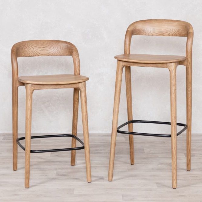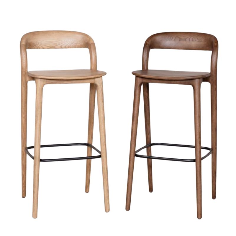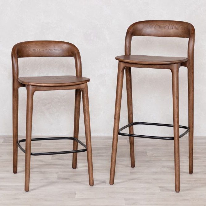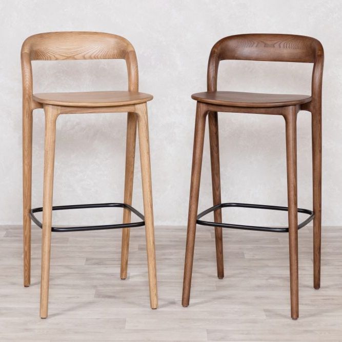 Crafted with precision, the Holbeck Bar Stools feature a solid wood frame available in two exquisite finishes: Walnut and Weathered Oak. The ergonomic design ensures optimal comfort, while the clean lines and tapered legs exude elegance. Whether you're entertaining guests or enjoying a quiet evening, these stools provide the perfect perch.