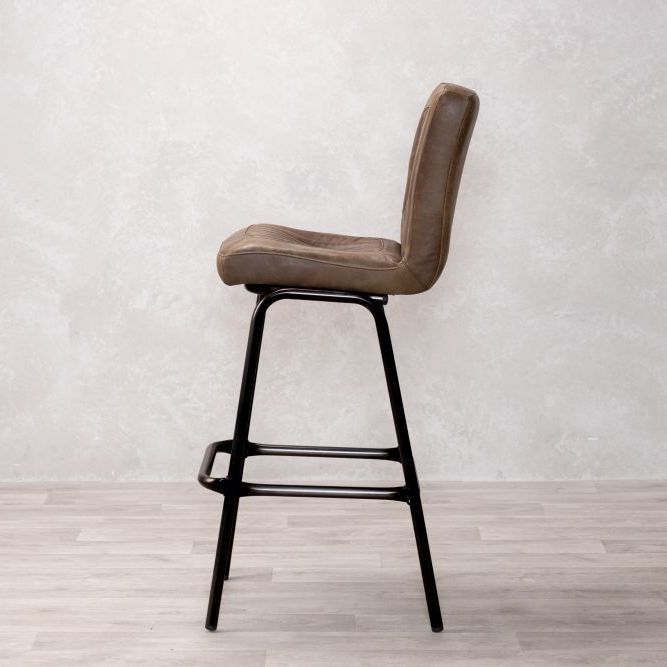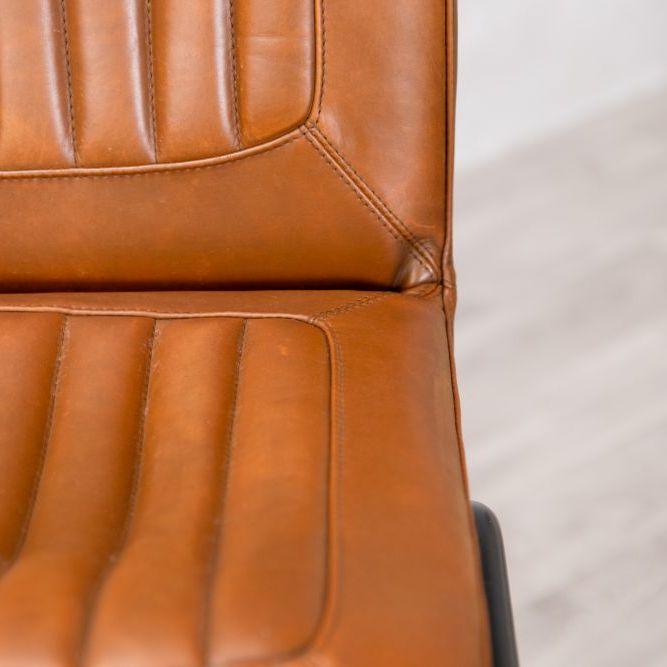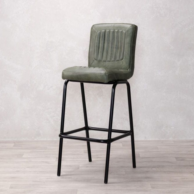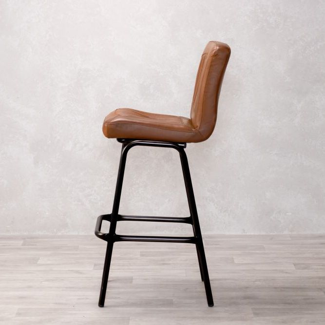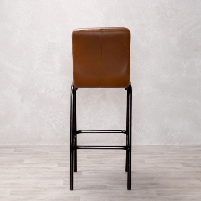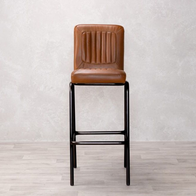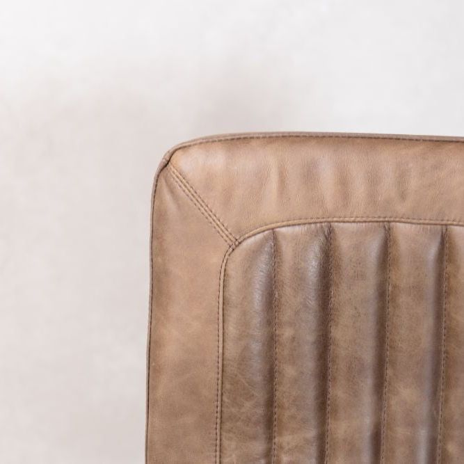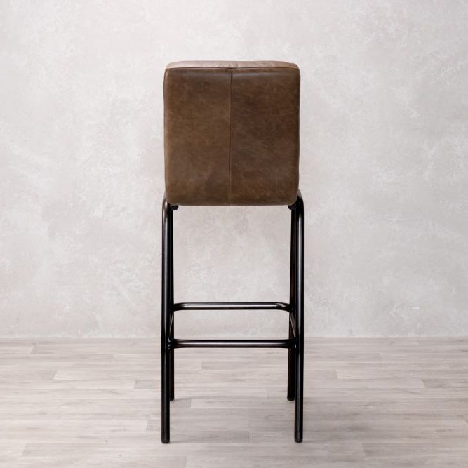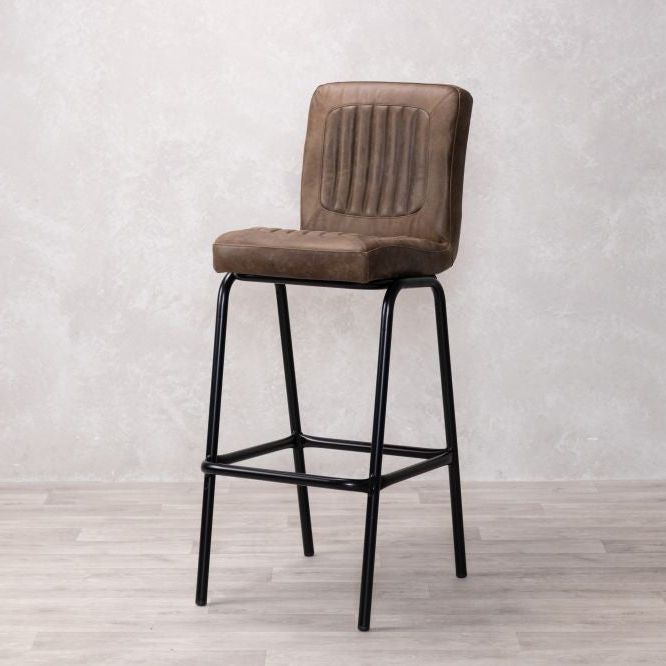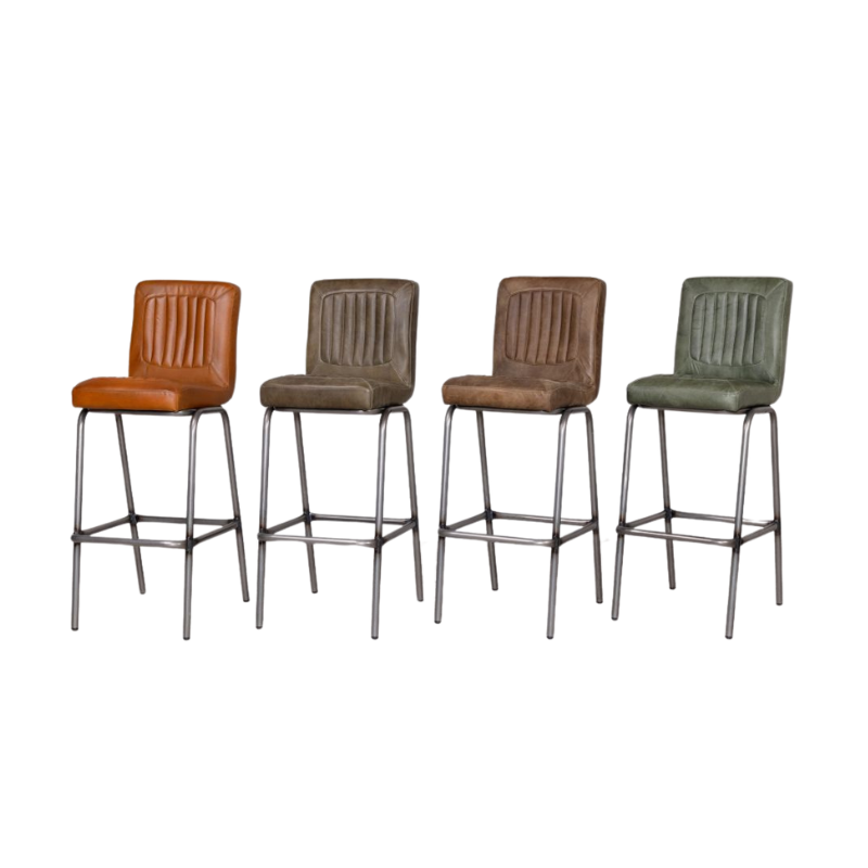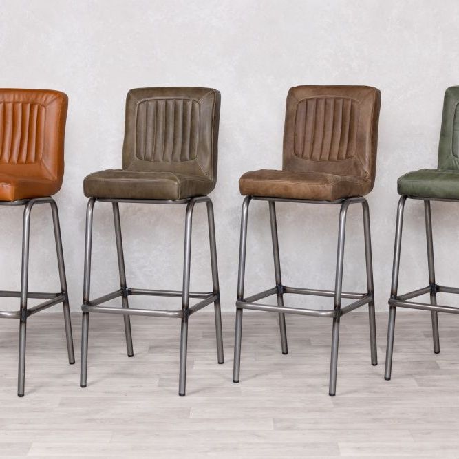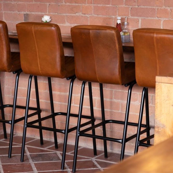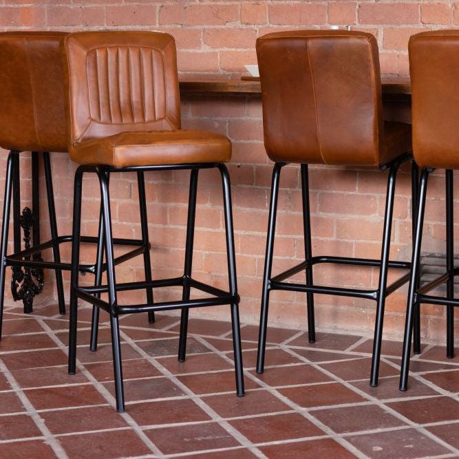 Add timeless charm and industrial edge to your home bar with the Jenson Distressed Leather Bar Stool. Crafted in the UK and designed for both residential and commercial use, this genuine leather stool offers authentic vintage appeal with its natural scarring, blemishes, and hand-finished character. The ribbed leather seat is both visually striking and supremely comfortable, providing a stylish perch for entertaining or casual dining.