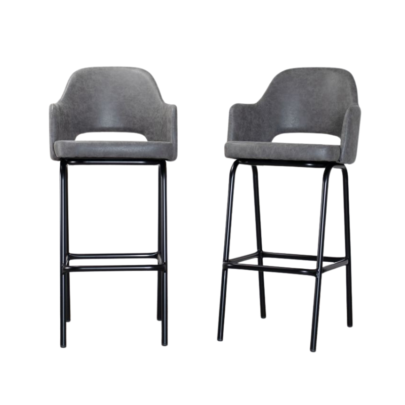 Its curved back and cut-out detailing enhance its retro charm, while the ribbed seating provides ergonomic comfort. The tubular steel frame is available in either Gunmetal or Black powder-coated finishes, making it easy to coordinate with various interior styles. Designed for long-lasting use, each frame is fully welded and features protective plastic feet to prevent floor damage—ideal for hardwood or tiled floors in home bars.
