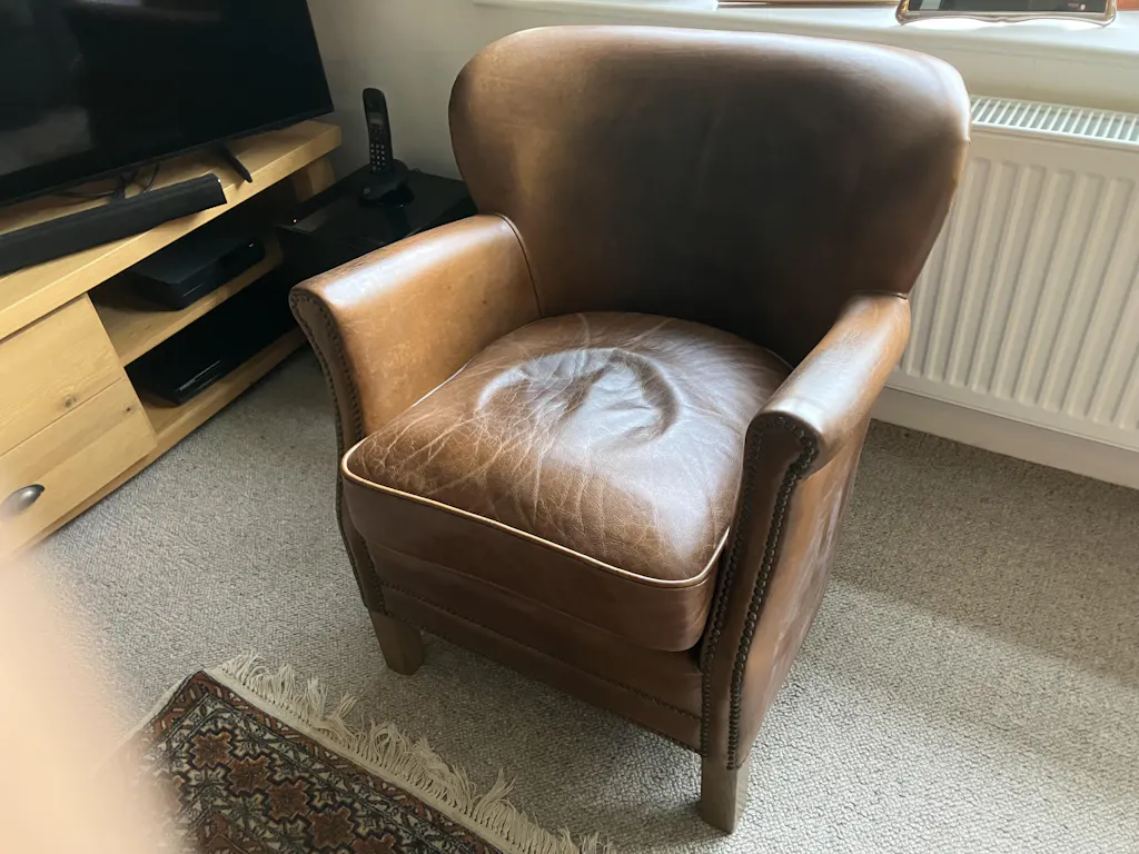 Crafted with a solid wood frame and high-quality leather upholstery, this armchair is built to last and withstand daily use in lively home bar environments. The sturdy build ensures lasting support, while the leather ages beautifully to develop an authentic vintage look. Its versatile design also allows it to work equally well in firesides, reading corners, or entrance halls—making it a true investment piece for your home.