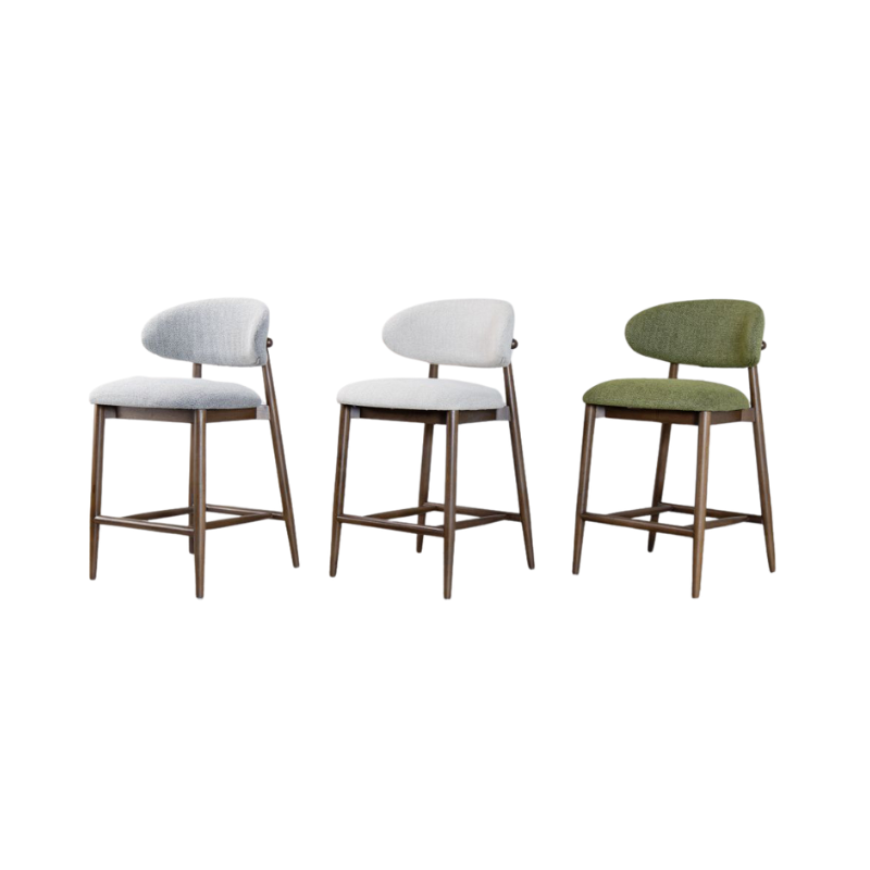 Available in Oatmeal, Green, or Grey, the stool complements a range of interiors, from Japandi and Scandinavian-inspired homes to more rustic or contemporary bar setups. Its neutral tones and refined finish allow it to pair seamlessly with the matching Venice Dining Chair or Accent Chair for a cohesive look throughout your home.